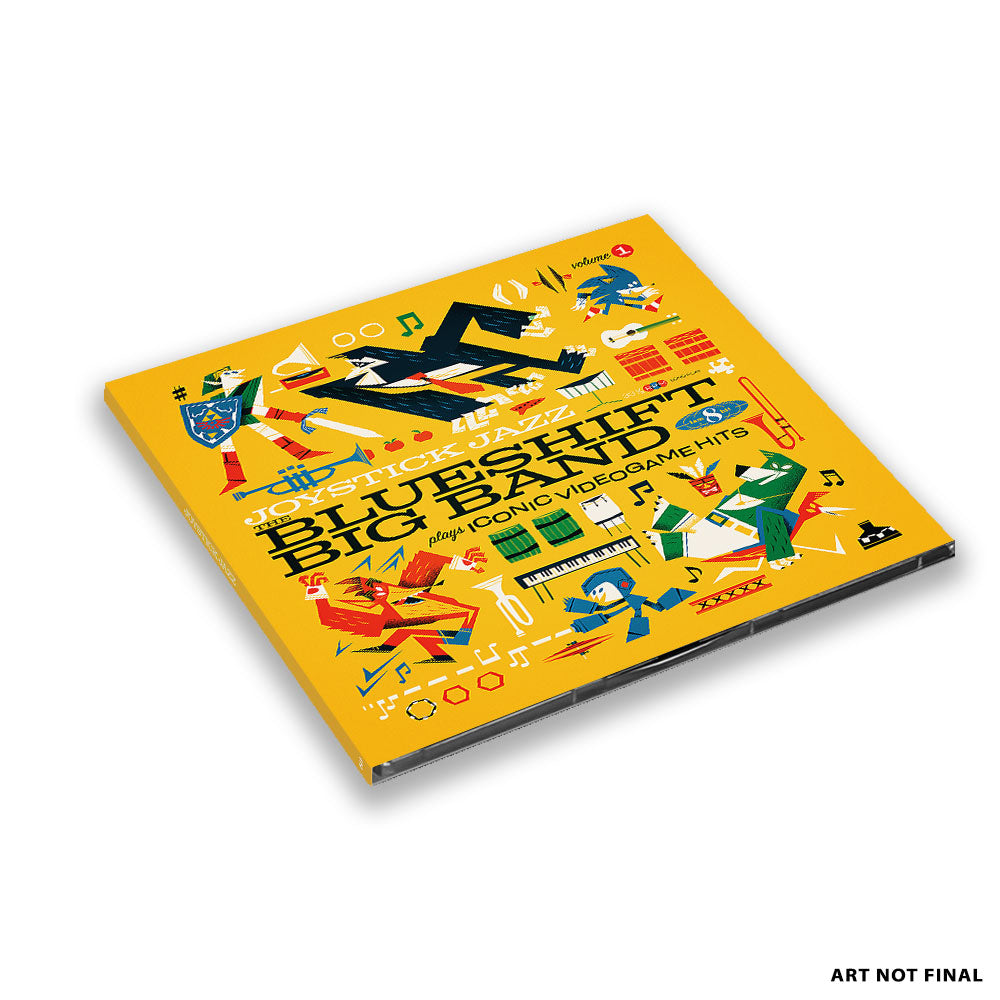 For the first time ever, you can hear these incredible jazz reimaginings on compact disc. We’re proud to present Joystick Jazz Volume 1: The Blueshift Big Band Plays Iconic Video Game Hits CD in all its Digipak-wrapped glory. Plus, you’ll get a digital download for the entire album, perfect for adding some jazzy flare to your on the go devices. Wrap it all up in beautiful Saul Bass-inspired artwork from iam8bit superfriend Mark Borgions and you’ve got a package worth so much more than its weight in game-night snacks.